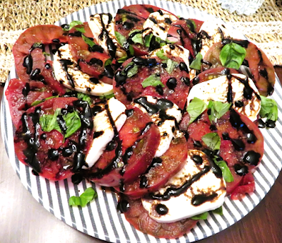 hard to beat heirloom tomatoes, fresh mozzarella and basil leaves with a nice