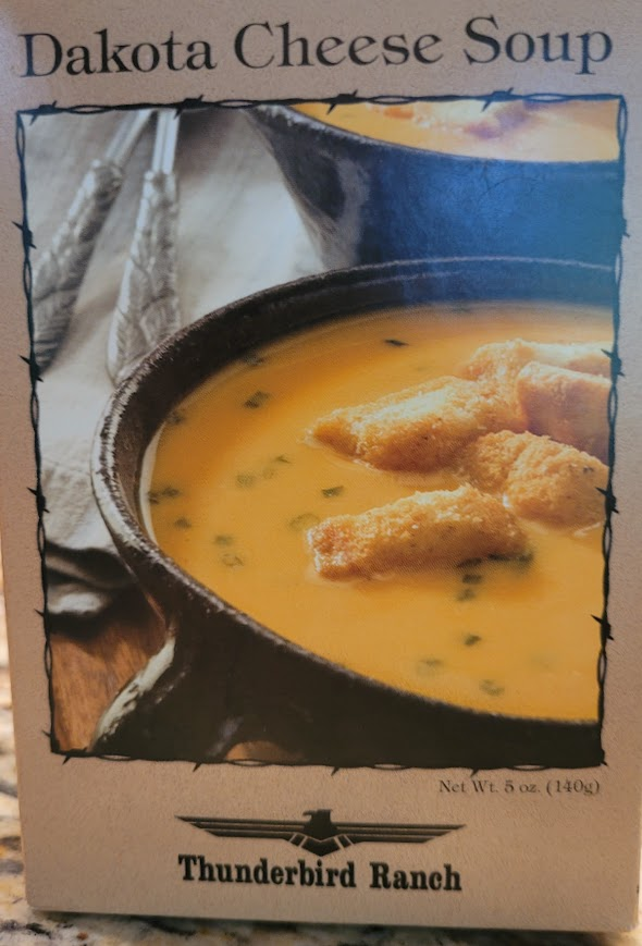 As we recently wandered through a plethora of local markets, farmer's markets and boutique malls, Laurie spotted this package containing the makings of Dakota Cheese Soup.  We both like cheese soup so it was a natural impulse.